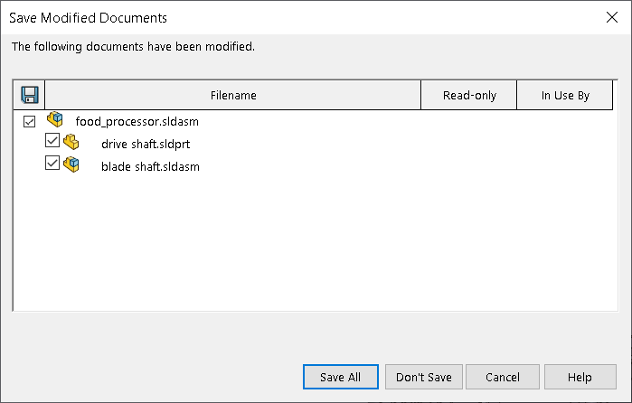 - Eine Baugruppe zeigt beim Öffnen sofort eine Markierung für Änderungen an und obwohl keine Änderungen vorgenommen wurden, fordert SOLIDWORKS uns beim Schließen der Baugruppe auf, die Daten zu speichern: